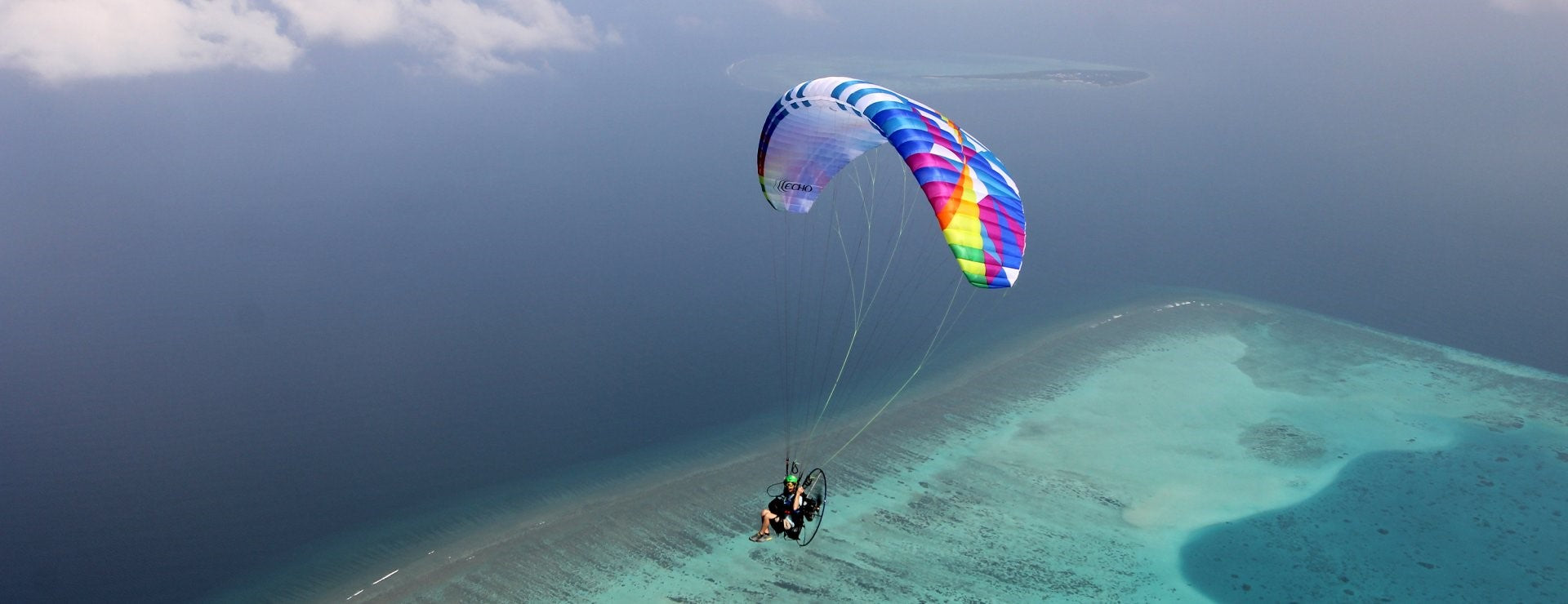 The ECHO MOTOR is an easy, safe and versatile lightweight powered paraglider. Its stripped-down line-set and lighter materials shave grams and increase performance and versatility with no compromise in safety. The ECHO MOTOR has Bruce’s trademark handling and its low weight means less inertia, less shooting and better roll stability. 3D CCB panel-shaping mean a clean, high-performing aerofoil and the strong shark nose keeps the leading edge solid at all speeds. Smooth, easy bar action is assured by silky-smooth Ronstan ball-bearings. The ECHO MOTOR is available with free-flight or PPG riser-sets. It offers clear, concise feedback, a relaxed feel in active air and top performance for its class!